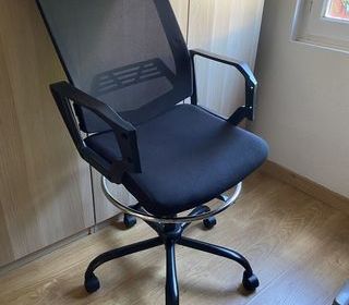 Très peu utilisé et en excellent état. Chaise légèrement haute et convient parfaitement aux bureau en hauteur.