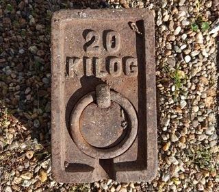 Ancien poids de 20 kg utilisé pour les commerçants et divers marchands . Pas d 'envoi .