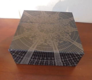 Très belle boite, soit pour faire un cadeau, soit pour ranger vos biens les plus précieux, en carton très épais, lavable, extérieur motifs dorés sur fond noir, intérieur roug