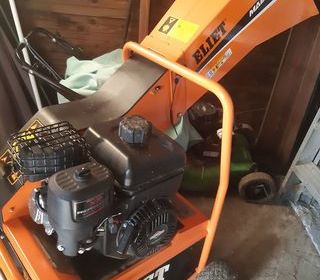 broyeur en très bon état peu servi outils à moteur thermique 5,5 cv bac toile de 60l capacité de coupe 40 mm 12 couteaux réversibles dentés valeur neuf 1450 e