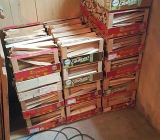 je vous propose du petit bois très sec a utiliser de suite pour allumer le feu dans votre fourneau ou cheminée dans des cagettes environ 7 kg a 7 € l unite mais négociable li