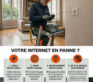 NOS INTERVENTIONS ? Dépannage fibre optique (internet ne fonctionne plus) ? Réparation fibre optique (fibre cassée, soudure, PTO, jarretière) Recherche et résolution de pannes I