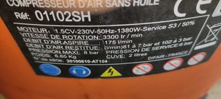 Loue Compresseur à air comprimé.Très bon état. Prix bas. air comprimé. Moteur &,5 cheval 230 volt 50 hertz . Vitesse de rotation : 3300 tours par minutes. Débit air aspiré : 175 l