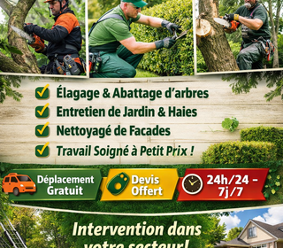 ? Travaux extérieurs : - Tonte, taille, débroussaillage - Élagage - Nettoyage de toitures et de bâtiments - Petite maçonnerie - Terrassement - Création et pose de