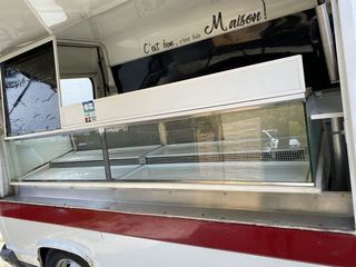 food truck non VASP prêt à l'emploi vitrine + frigos à l'arrière plan de travail + plan travail d'abattable électricité refaite à neuf plus d'informations sur demande
