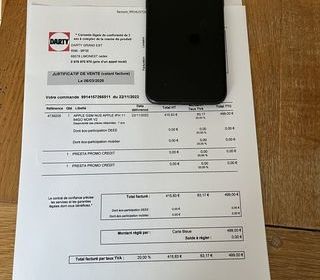 IPhone 11 noir 64 GB Très bon état pas de rayures toujours avec coque et protection écran Facture et boite d'origine Batterie 84%