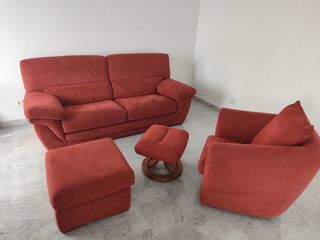 Je vends cet ensemble canapé 3 places rouge en alcantara, très confortable, parfait pour créer un salon accueillant. Composé d'un canapé, d'un fauteuil et d'accessoires assortis,