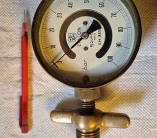 Manometre d'épreuve de pression de précision, Type Etalon, marque BOURDON Paris. Métal cuivre jaune, peu servir de pièces de collection.