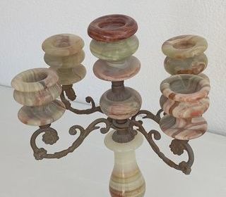 Chandelier en onyx, à 4 branches pivotantes et une centrale fixe. Parfait état. Couleur vert veiné de marron. 90 euros à débattre