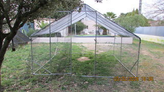 ENCLOS démontable de 9m2 Assemblé par tubes et boulons. couvert par une bache blanche résistante de 3x2.80 m grillagé avec une porte .