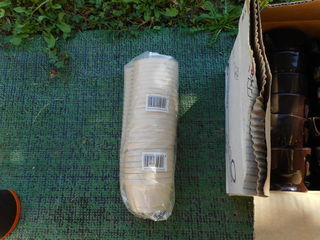 Lot comprenant : 23 tasses à café en plastique marron foncé, de marque FOUNTAIN , 25 tasses à café en plastique beige, Le tout jamais servi. Donne avec plus d'une centaine de g