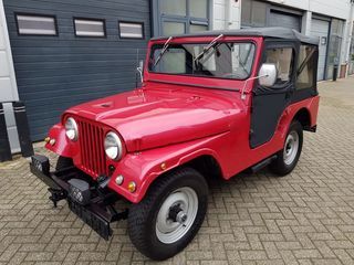 Jeep Willys, Cabriolet, Essence, Mai/1956, 7 500 Km , 2 portes Rouge métallisé. Capote noire. Intérieur simili cuir noir. Année de construction 1956. Moteur turbo diesel Endenor (p