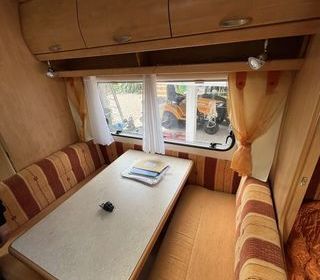 caravane idéale pour une petite famille avec des grands lits, superposés d'un côté et un grand lit fixe de l'autre côté dînette transformable également en couchage. Très bon état g