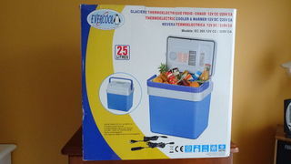 Glaciére thermoélectrique isolée par de la mousse polyréthane Fait du froid ou du chaud Capacité : 25 litres Fonctionne en 12 v sur allume cigare et en 220 v ( les 2 cordons sontr