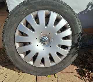 Jantes tôle. Enjoliveurs VW. Pneus neige usure 50% environ. Dimensions: 205x55 R26