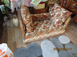 canapé recouvert en velour transformable par simple abaissement des extrémités en lit à une place complet avec son matelas