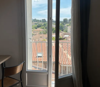 T2 traversant , très lumineux, au calme. Côté salon et chambre très jolie vue dégagée sur les toits et les collines alentours. Appartement rafraichi en 2020, avec l'installation de