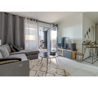 Appartement récent, avec pièce de vie, cuisine équipée, chambre, salle de bains, WC et terrasse privative de 10 m² Parking couvert