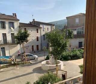 1er etage avec balcon. Grand sejour cuisine donnant sur fontaine du Cours de la Republique, avec vue sur la Seranne. Sol grès ceram Tres jolis Plafonds voutin bois H= 2m60 Cuis