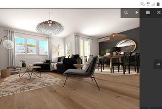 LATTES CENTRE - Vends T3 de 57 m2 avec terrasse - climatisation réversible - place parking privative - La pièce à vivre donne sur une zone piétonne très calme avec une cuisine ou