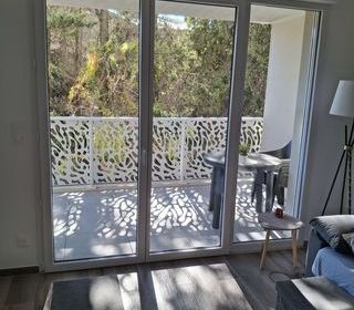 Entre Vignes et Garrigue ,Pignan 34570 , Charmant T3 traversant avec deux terrasses , jardin exposition Sud et Sud-Est. Au rez-de chaussée de la résidence , appartement de type