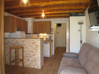 Studio en bon état équipé avec un lave linge, un frigo congélateur, un lave vaisselle, un téléviseur, une plaque de cuisson électrique, un micro onde,une cafetière et divers petit