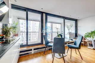 Charmant appartement de 113m² au 7ème étage d'un immeuble bien entretenu de 1974, situé dans une rue adjaçante de la Place de la Réunion à Paris 20. Profitez d'un espace de vie sp