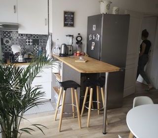 Vends appartement 2 pièces dans l'Isle Jourdain au calme et proche commodités dans résidence sécurisée avec piscine et place de parking Cuisine équipée, sol refait en parquet, te