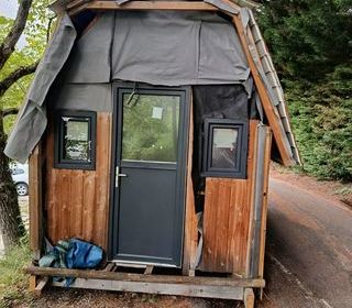 Chalet en vrai bois!?tout êquipé - pour location ou habitable de suite Salon+cuisine intêgrée+2chambres+sdb +terrasse Sur parcelle 250 m2 - au calme Dans camping calme Vers Quin