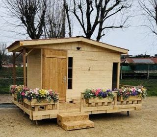 Chalet sur roulette 2 ch très luxueux haut de gamme 4 saisons très bien équipé cuisine integree Clim, terrasse, parking Oasis village puget modèle bois cilaos constructeur Sami