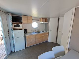 Vente Chalet à Argelès sur mer, 5 kms de la mer, dans une copropriété sécurisée. Le chalet est composé d'une grande cuisine tout équipée, un salon, 2 chambres et une SDB avec dou