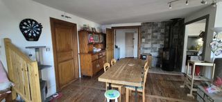 Maison individuelle de 5 pièces comprenant : Rez-de-jardin : 1 chambre donnant sur 1 salle de bain équipée,cuisine équipée,1 salon + 1 cheminée avec insert,1 WC indépendant,1 vé