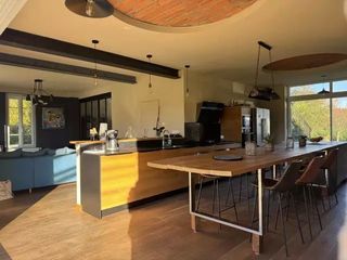 Le rez-de-chaussée est composé d'une entrée avec placard et un WC indépendant, d'un grand séjour avec cuisine équipée de 30 m², viennent compléter ce niveau restauré avec goût.. Do