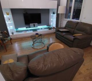 MAISON individuelle de 110 m2 en fin de jardin de 312 m2 , rdc 30 m2 avec cuisine ouverte , salon , salle à manger sous loi pinel hauteur de plafond rdc 2 m , 1er étage 1 chambre