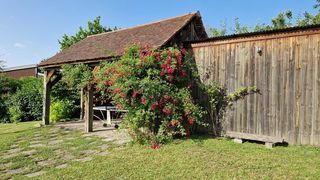 Charmante maison de plein pied de 95m2 très lumineuse et 80m2 d'annexes sur une parcelle de 607m2. Le grand jardin, sa terrasse et les annexes, particulièrement l'atelier de 36 m2