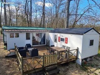 Sur 2400 M2 Maison de loisirs habité à l'année..... 4 chambres , cuisine aménagée avec les appareils électroménagers ! ! Terrasse couverte de 25 M2 poil à pellets et deux clima