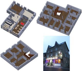 Le bâtiment est situé en plein centre-ville sur une parcelle cadastrale de 230m². Seulement 660€/m² dans une ville dynamique labellisée "Village de Caractère". Photos du restaura