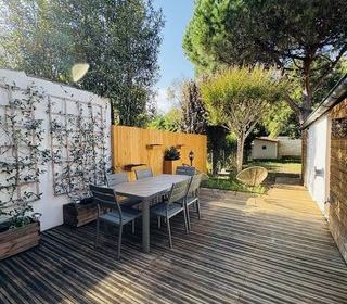 - Type : échoppe bordelaise, charme de l'ancien et modernité, environnement calme et proche commodités - Surface : 245m² (parcelle), 132m² (maison), 159m² (extérieur/jardin) - Lo