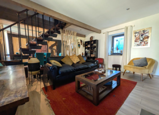 Maison en pierres apparentes, dans un authentique village médiéval en ruche, accroché à sa colline. La maison comprend 2 appartements séparés. Un appartement de75m2 entièrement meu