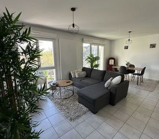 Appartement récent, avec pièce de vie, cuisine équipée, chambre, salle de bains, WC et terrasse privative de 10 m² Parking couvert