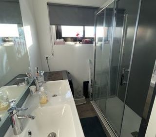 A deux pas des commodités (école bus commerces) environ 80m2 sur 140m2 au sol. Pièce de vie environ 22 m2 donnant sur terrasse bois de 15 m2 , salle de bain avec douche à l'italie