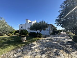 On entre par un portail motorisé sur une cour où on peut facilement garer 4 voitures. Il y a un grand garage isolé et carrelé de 35m2 qui donne sur l arrière du terrain paysage et