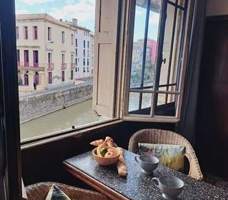 Très bel appartement traversant atypique, de 85m2, style art déco, double vues imprenables sur le canal de la robine et le palais des archevêques. Composé: - d'un hall ouvrant su