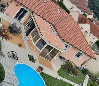 maison individuelle de plain pied de 2005 surface 150m2 + sous-sol 150m2 à 5 kms de Mondorf et de Schengen et 28 kms du Kirchberg ,implantée sur un terrain de 8.49 ares avec vue dé