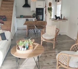 Charmante maison des années 80 de 116m², elle propose une belle est grande cuisine ouverte sur le salon. En rez de chaussée vous trouverez un wc, une salle de bain avec douche et b