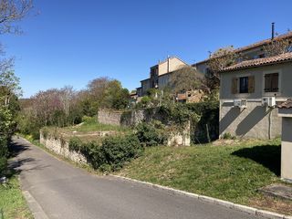 Mauvezin, 45 minutes de Blagnac, adorable terrain suspendu constructible, 740 m2, CU positif, plein sud, en plein c?ur de bourg à 150 m de la halle et des commerces. Côté charme, u