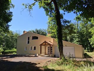 Maison d'architecte comportant 3 chambres , grand espace de vie ,garage , cave et bureau , + de 140 m2 située sur un terrain partiellement boisé de 5 000 m2 . La propriété s'ouv