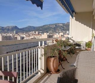 Appartement climatisé de 86m2 , ensoleillé, vue sur le port de Toulon et les montagnes, bénéficiant d'un balcon terrasse de plus de 14 m2 avec trois store bannes électriques. Aucun
