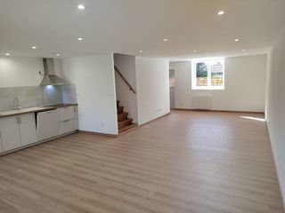 Maison de village de 107 m² située à Boz. Au rez de chaussée : Pièce de vie spacieuse et lumineuse de 45 m² comprenant un grand séjour et une cuisine équipée neuve. Un WC av