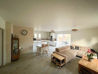 Maison de plain pied avec 4 000 m2 de terrain à 5 mn de Roquefort, 10 mn d'Agen et 5 mn du péage autoroutier. Sa superficie est de 122m2. La cuisine équipée (14m2) est ouverte sur